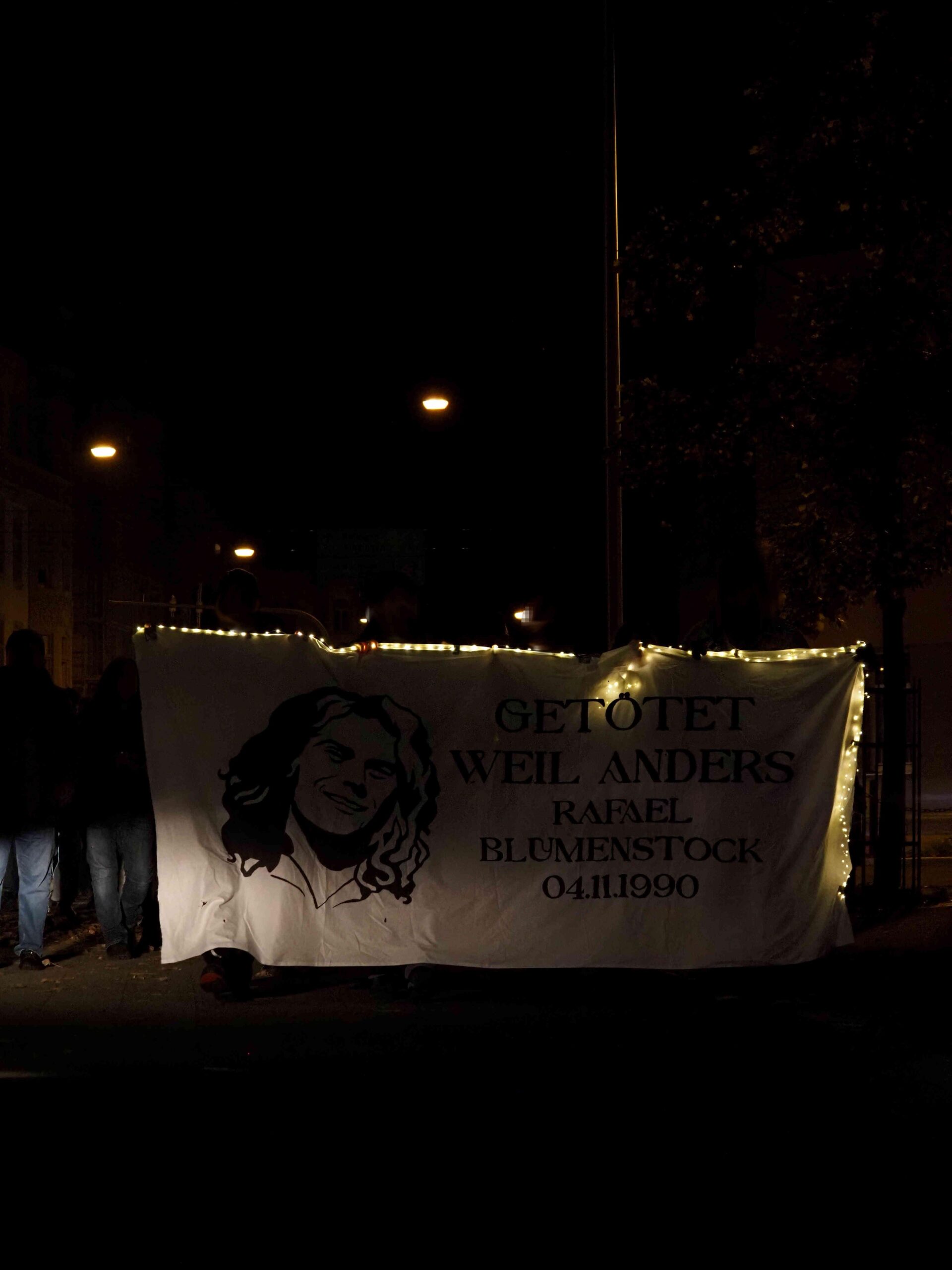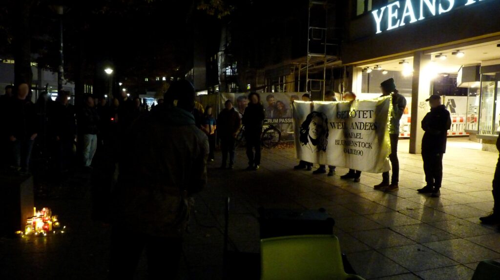 Dem heutigen Gedenkspaziergang schlossen sich um die 50 Personen an. Damit war das das größte Gedenken an Rafael Blumenstock der letzten 5 Jahre. Vom Café Omar zum Aquarium und schließlich zum Gedenkstein am Münsterplatz. Auf der Strecke und am Gedenkstein teilten immer wieder Menschen, die Rafael kannten ihre Erinnerungen an Rafael.