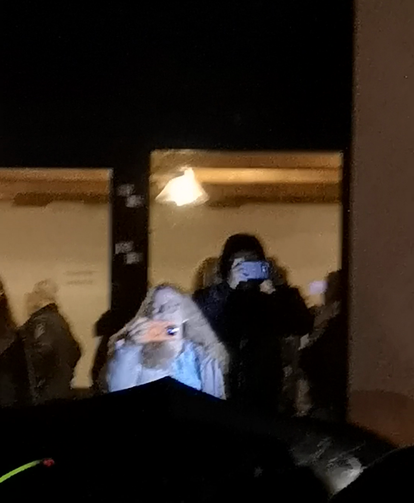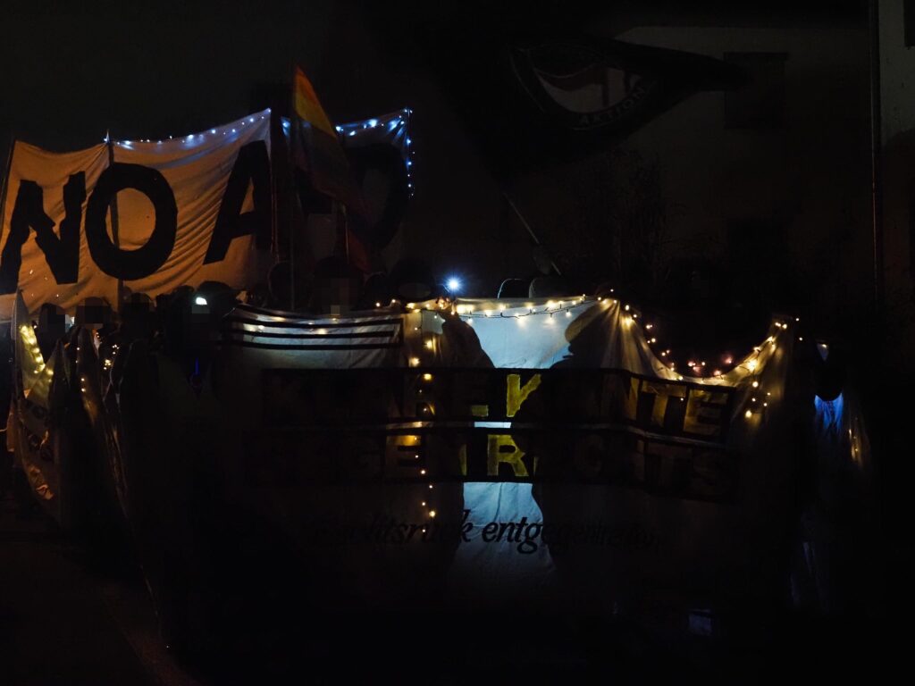 Der dunkle Dezember Sonntag wurde durch Taschenlampen und Lichterketten erleuchtet – das sieht nicht nur gut aus, es ist auch ein guter Umgang mit dem Gegaffe und dem Versuch der Anti-Antifa Fotografie der AfD. Portraitbilder bei solchen Lichtverhältnissen (dunkle Kleinstadt) werden stark erschwert.