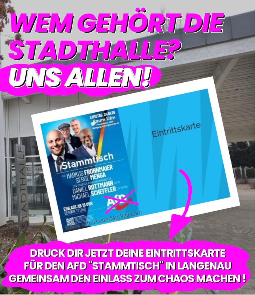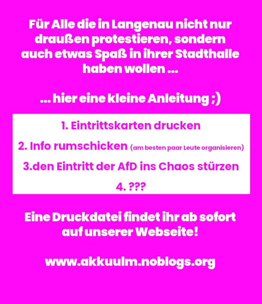 Für Alle die in Langenau nicht nur draußen protestieren wollen sondern auch etwas Spaß in ihre Stadthalle haben wollen eine kleine Anleitung 😉
