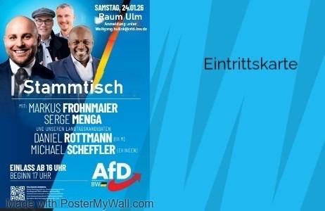 Die AfD Ulm flunkert mal wieder: ihre Veranstaltung die sie seit Wochen öffentlich bewirbt, wird jetzt in der Presse als kleiner und fast interner Stammtisch dargestellt. Klar der Ministerpräsidentkandidat kommt einfach so mal vorbei, klar die mieten einfach so eine Stadthalle an.