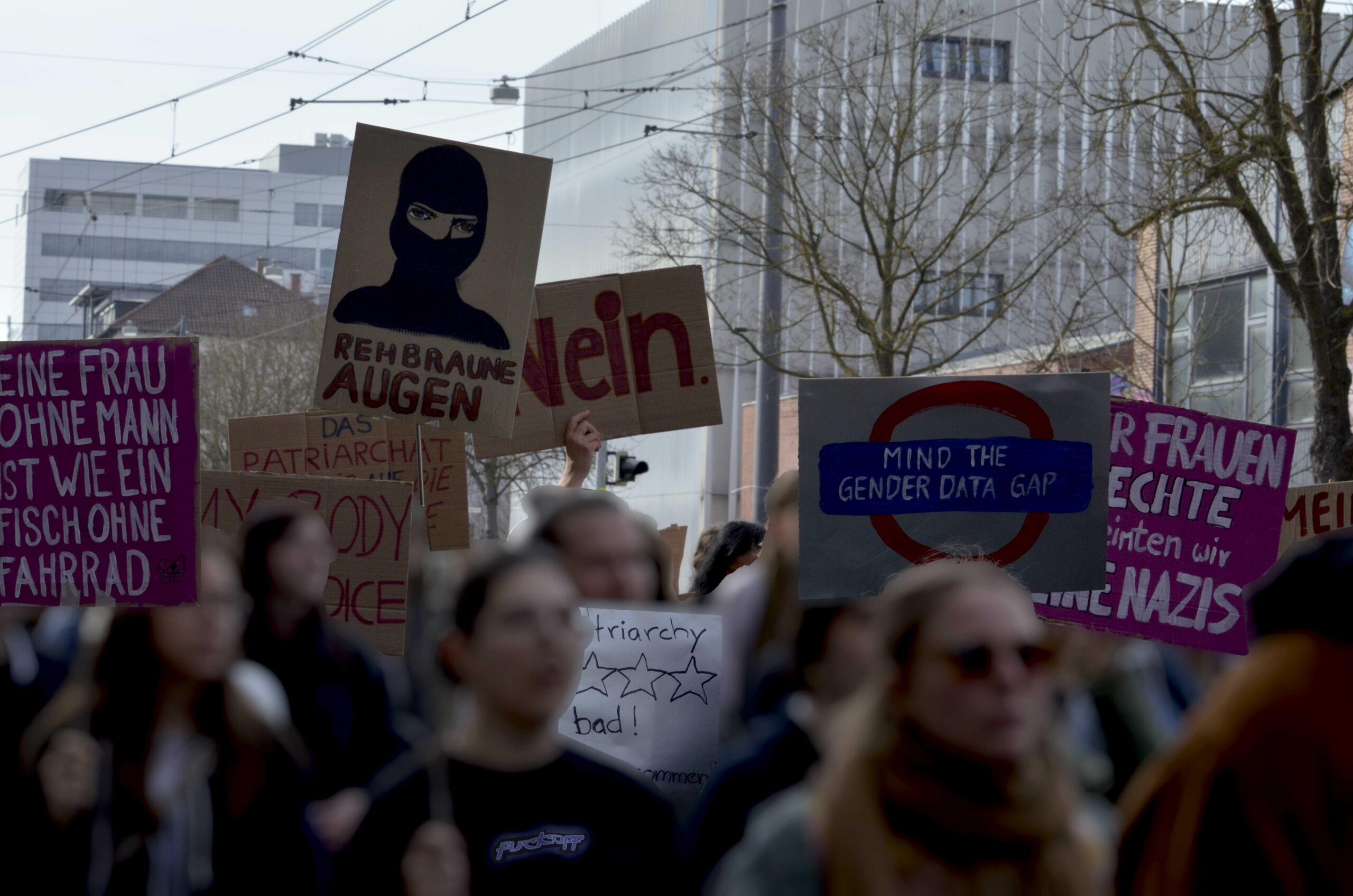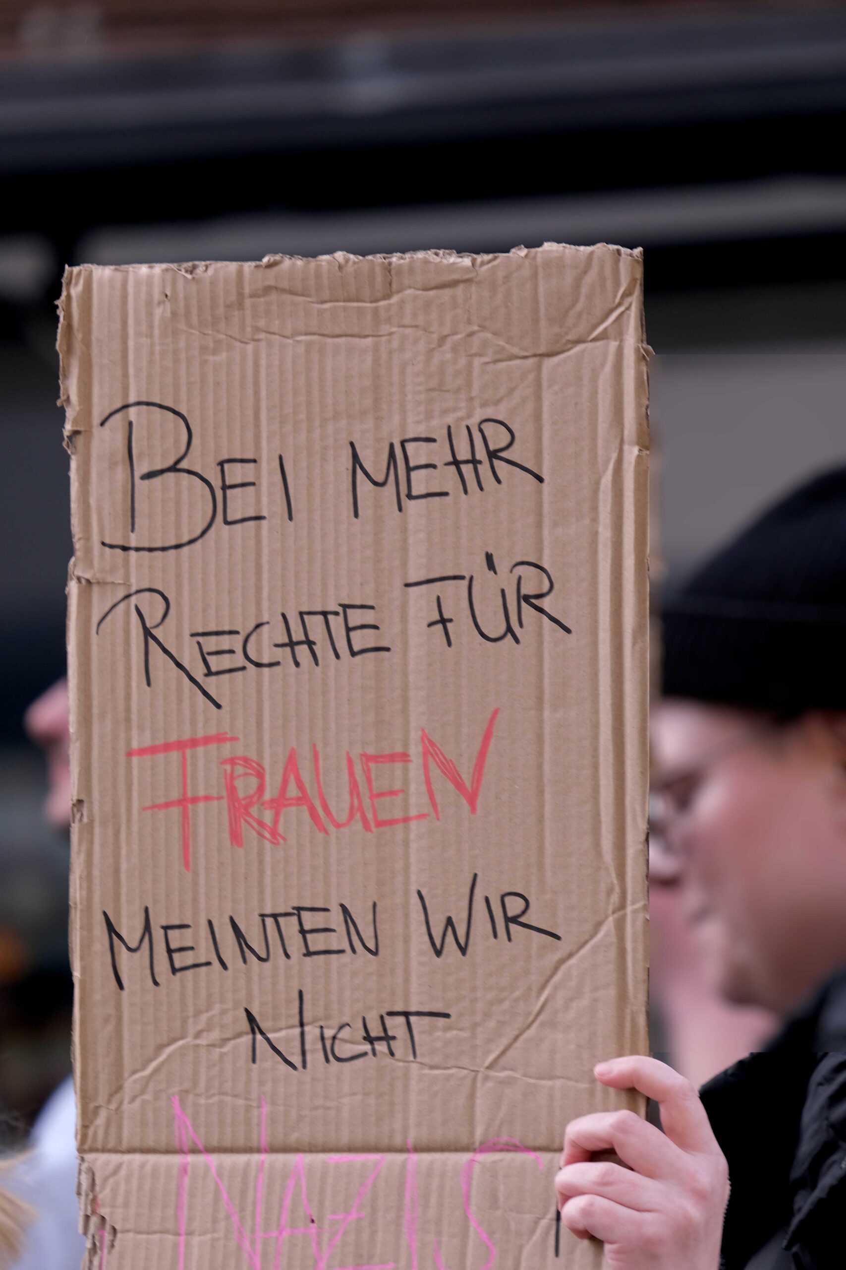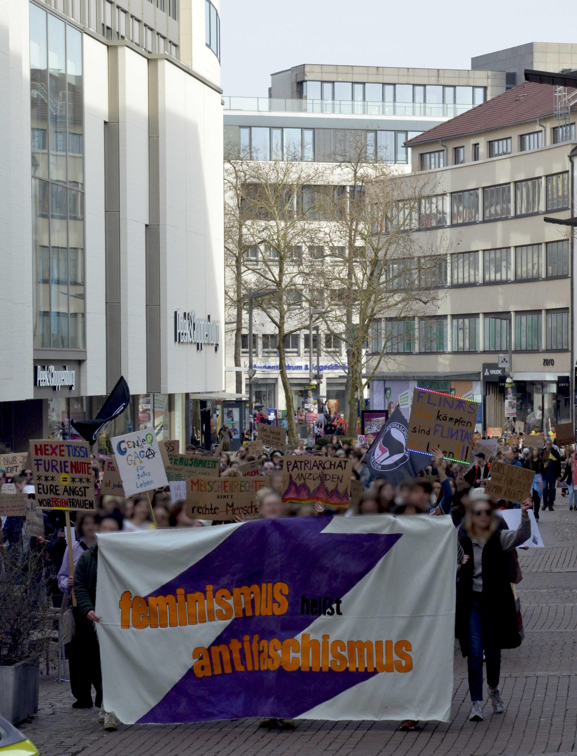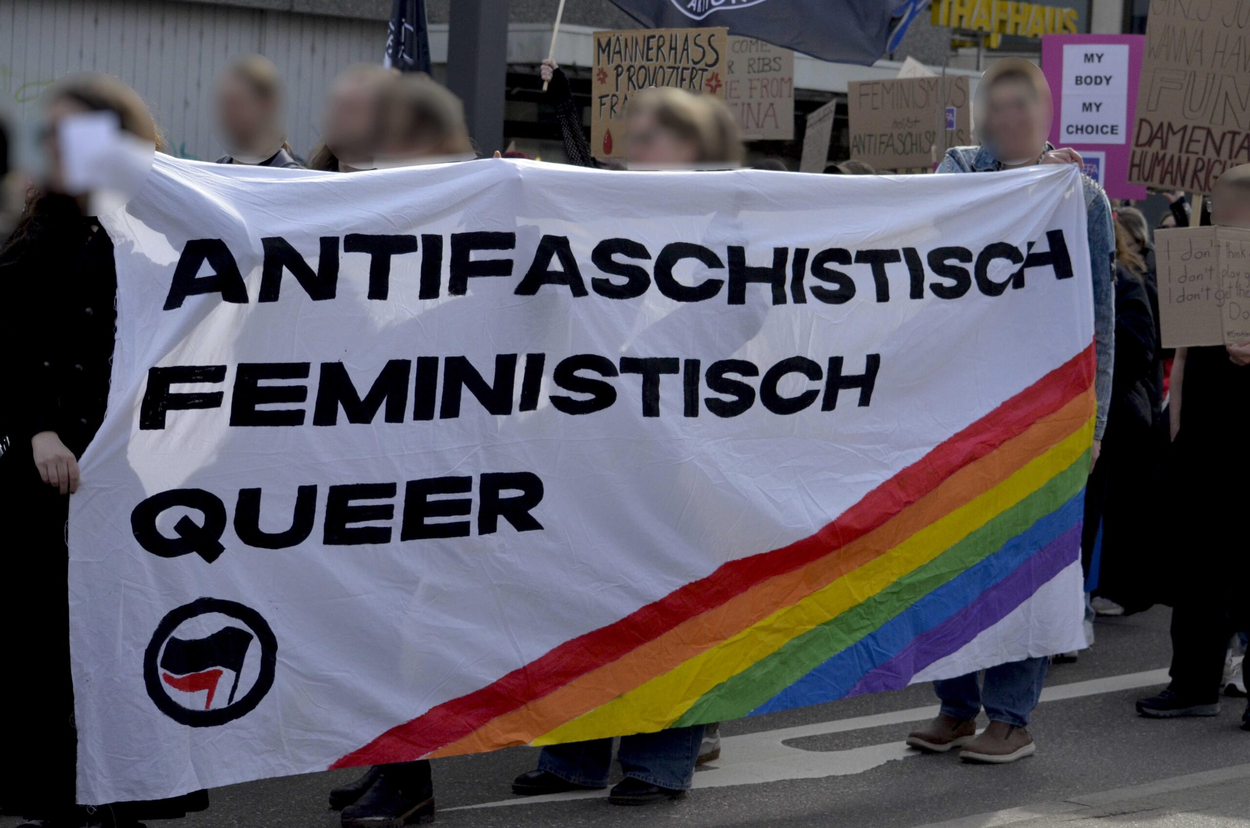 Das Motto der Demo lautete “Feminismus heißt Antifaschismus”, gewählt explizit auch mit Blick auf die am gleichen Tag stattfindende Landtagswahl in Baden-Württemberg.